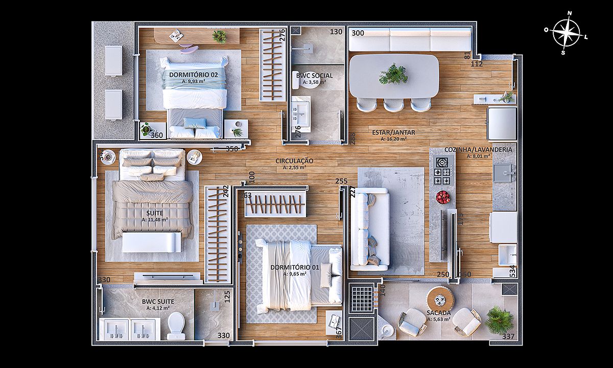 • Área privativa: 67,95m²