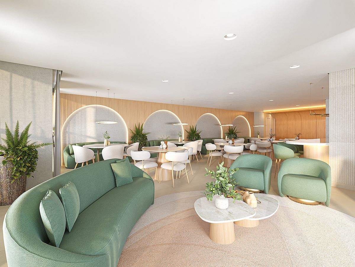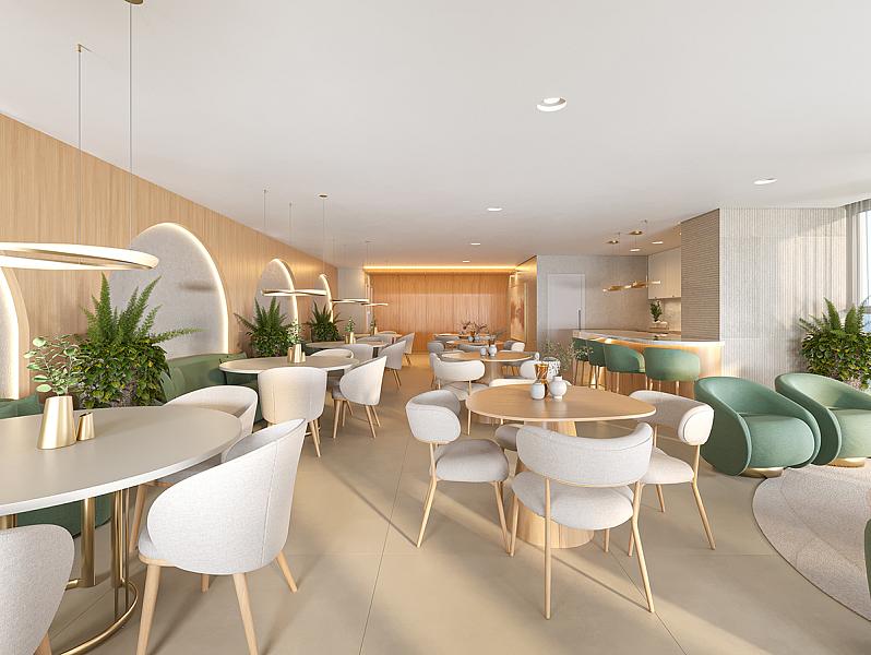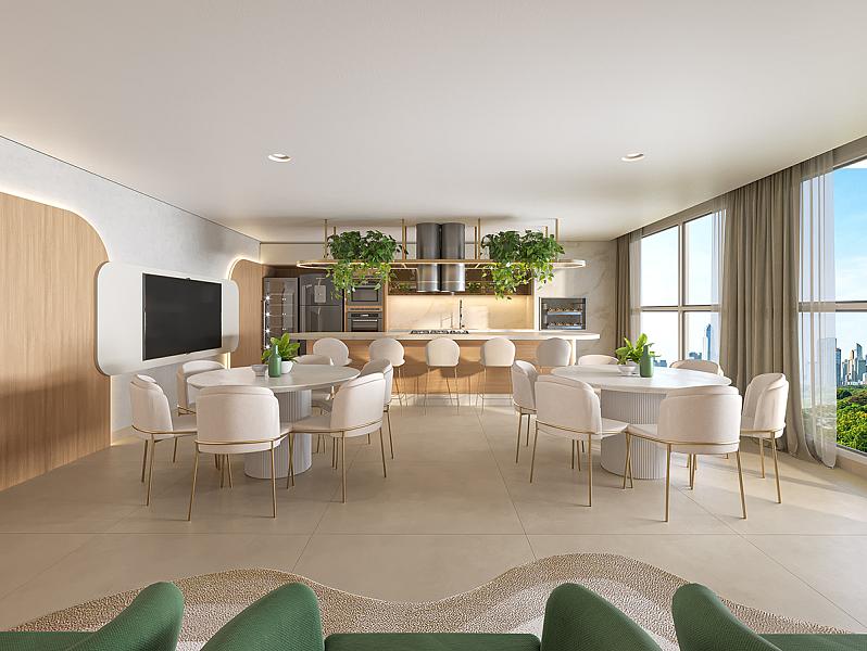 • Ambientes da área comum serão entregues mobiliados e equipados.