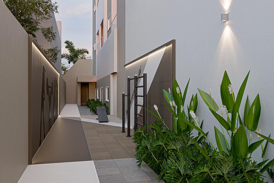 • Fachadas com destaque em LEDs e floreiras.