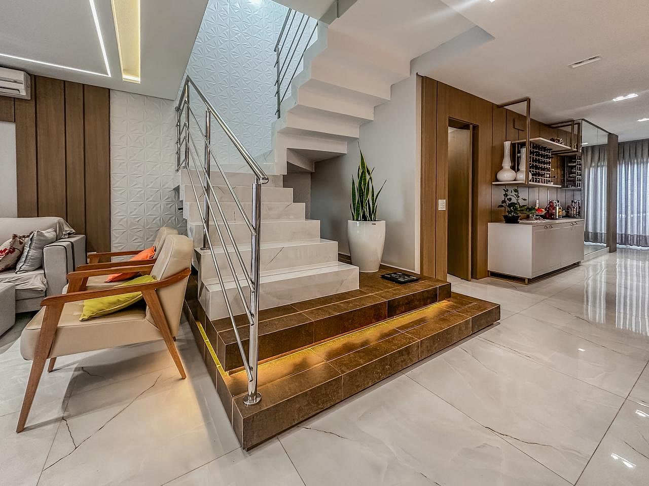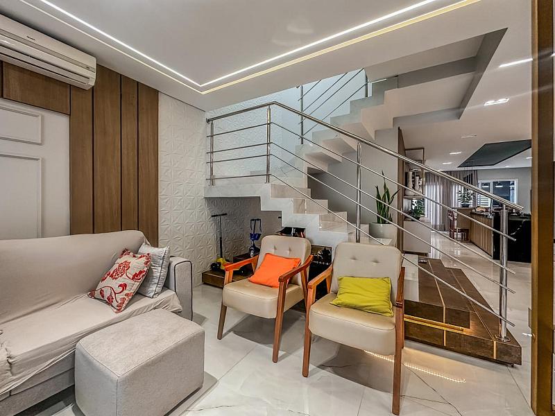 O sobrado foi cuidadosamente concebido com materiais e projetos que entregam um estilo de vida elevado: