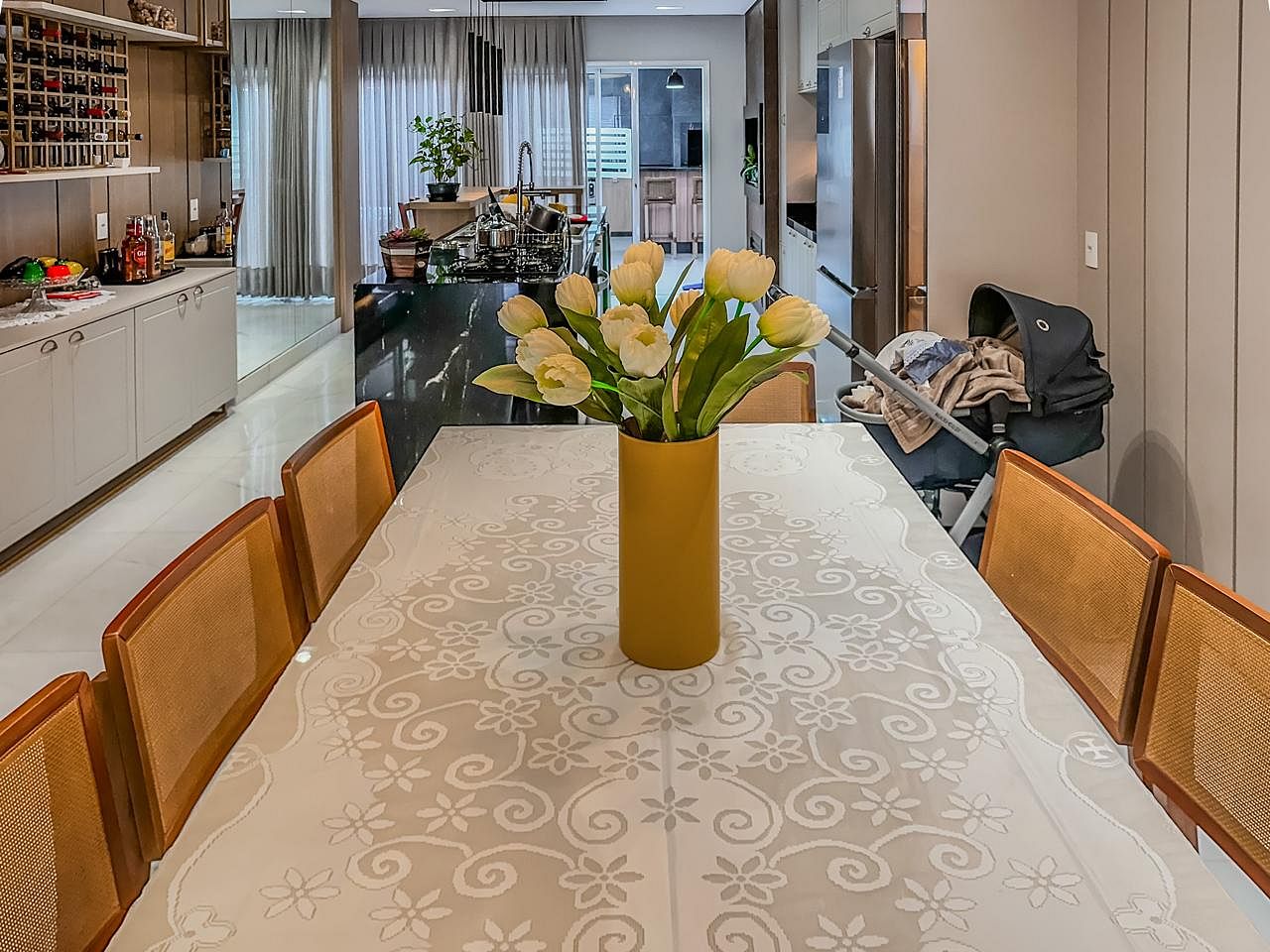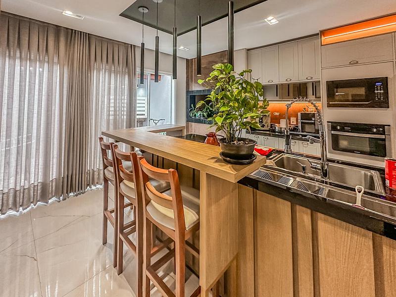 • Ambientes amplos e integrados, com fluidez entre sala, jantar e espaço gourmet;
